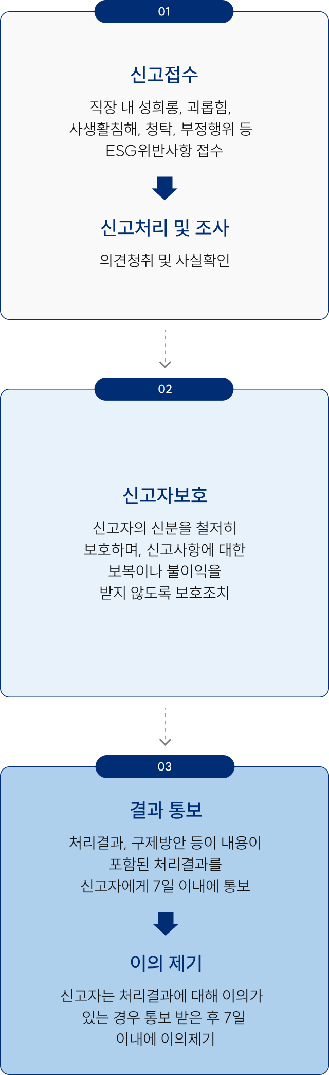 이 절차는 모든 신고자에게 안전하고 공정한 환경을 보장하며, 보복이나 불이익 없이 문제가 해결될 수 있도록 설계되었습니다.